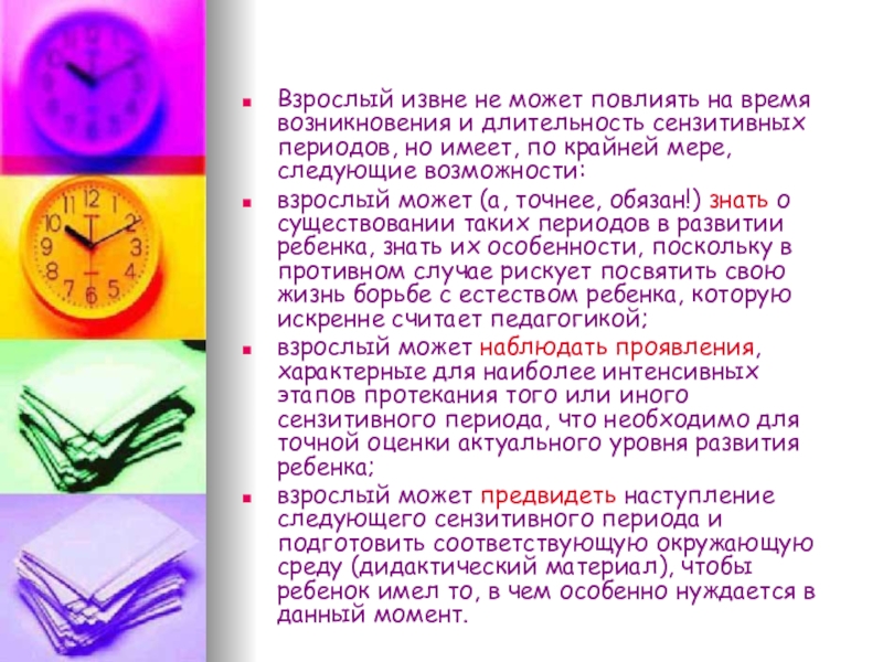 Взрослый извне не может повлиять на время возникновения и длительность сензитивных