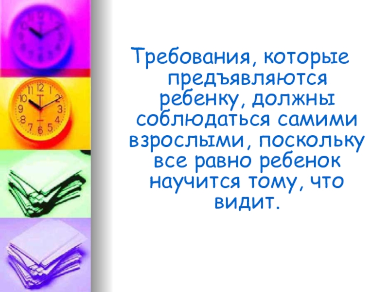 Требования, которые предъявляются ребенку, должны соблюдаться самими взрослыми, поскольку все равно