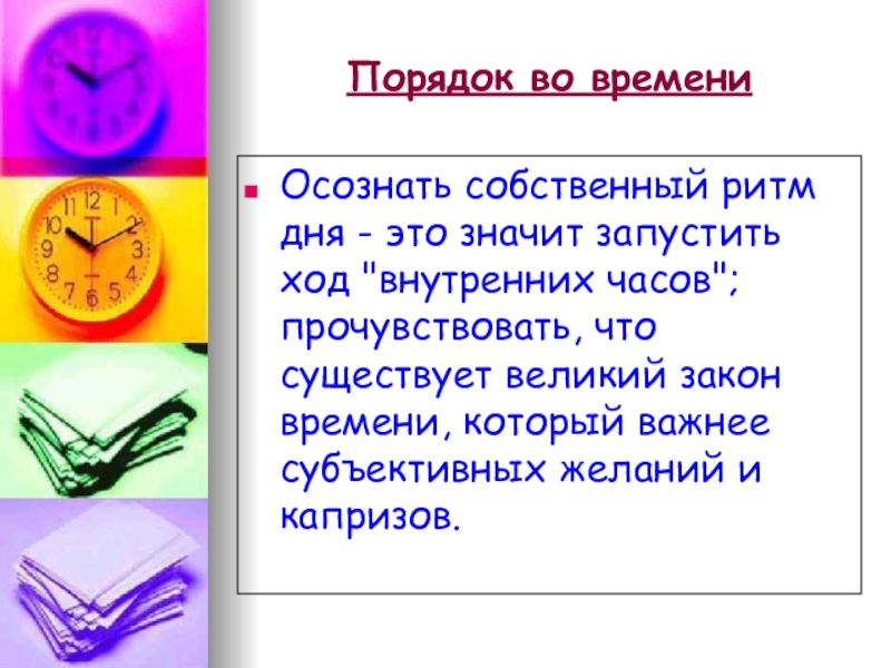 "внутренних часов"; прочувствовать, что существует великий закон времени, который важнее субъективных желаний и капризов.