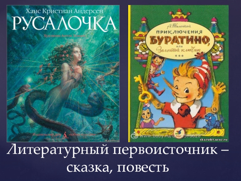 Слайд 4Литературный первоисточник – сказка, повесть