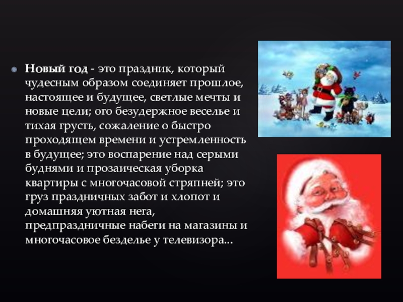 Сначала появляются положительные герои, которые как правило ждут прихода Деда Мороза.