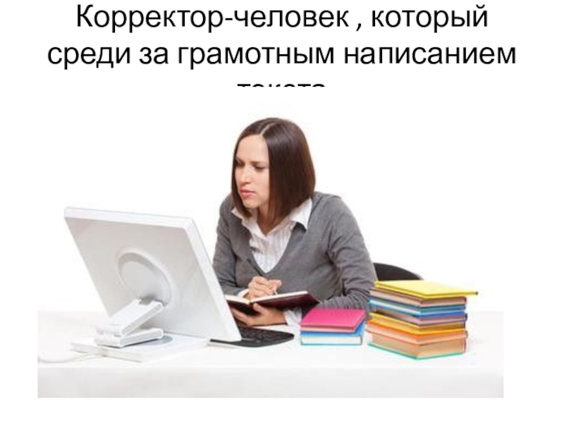 Слайд 22Корректор-человек , который среди за грамотным написанием текста