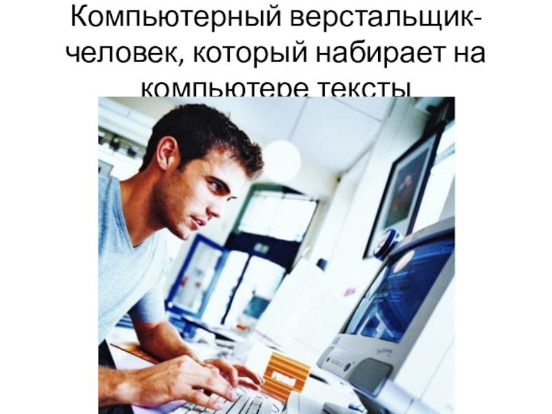 Слайд 23Компьютерный верстальщик-человек, который набирает на компьютере тексты