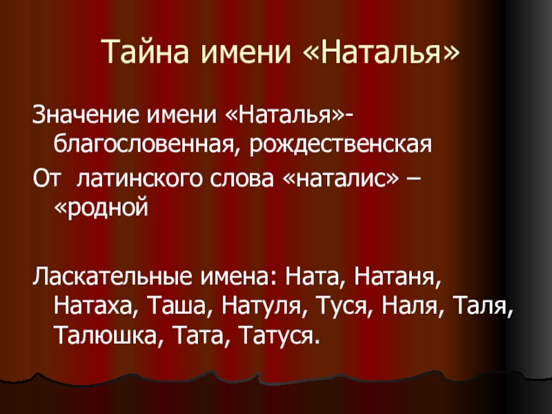 Слайд 1Тема: «Что в имени моём «Наталья»