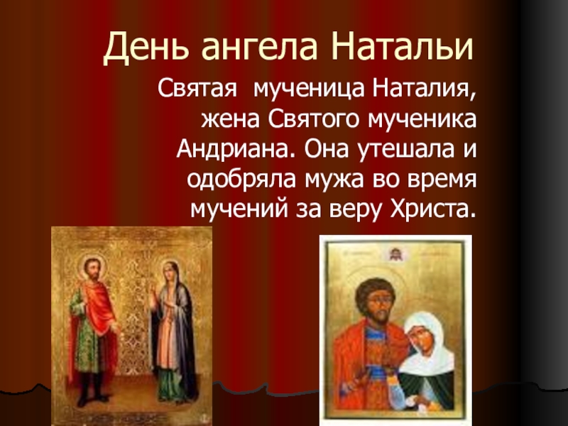Святая мученица Наталия, жена Святого мученика Андриана. Она