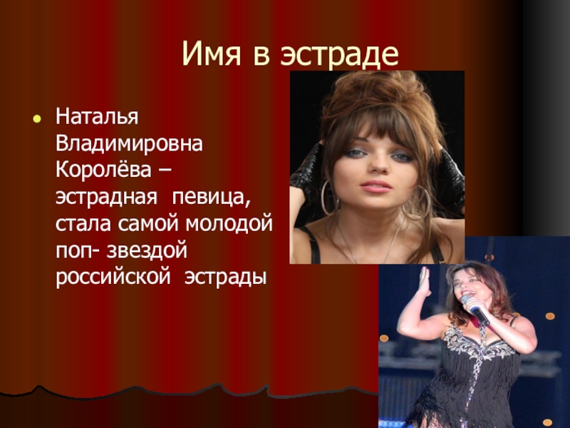 Наталья Владимировна Королёва – эстрадная певица, стала самой молодой