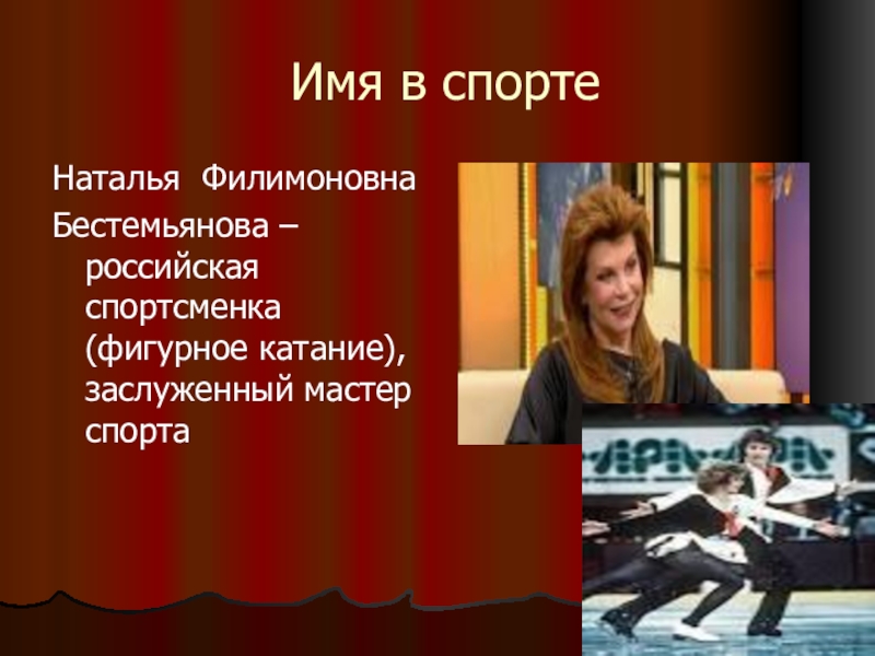 Бестемьянова – российская спортсменка (фигурное катание), заслуженный