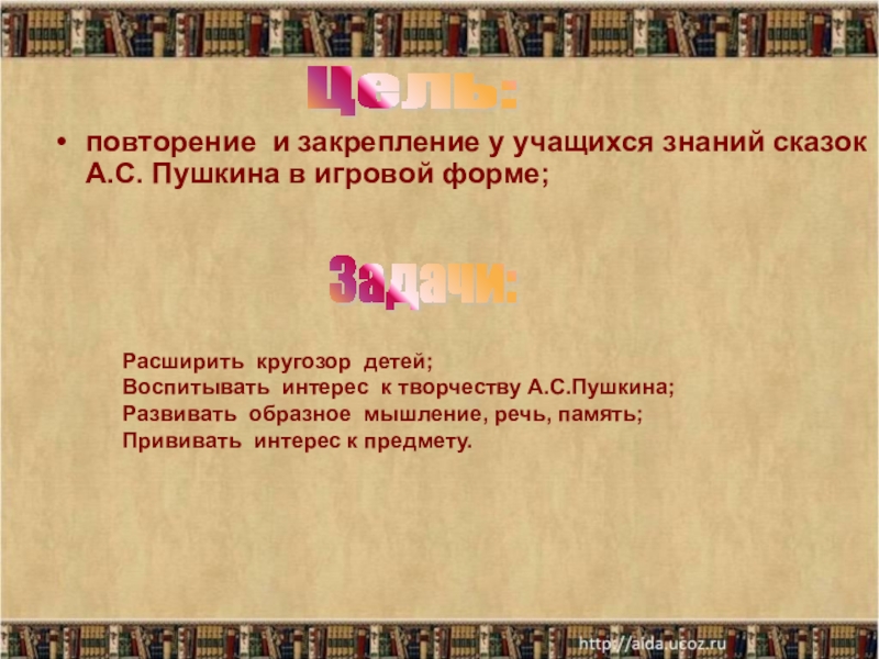 Воспитывать интерес к творчеству А.С.Пушкина;