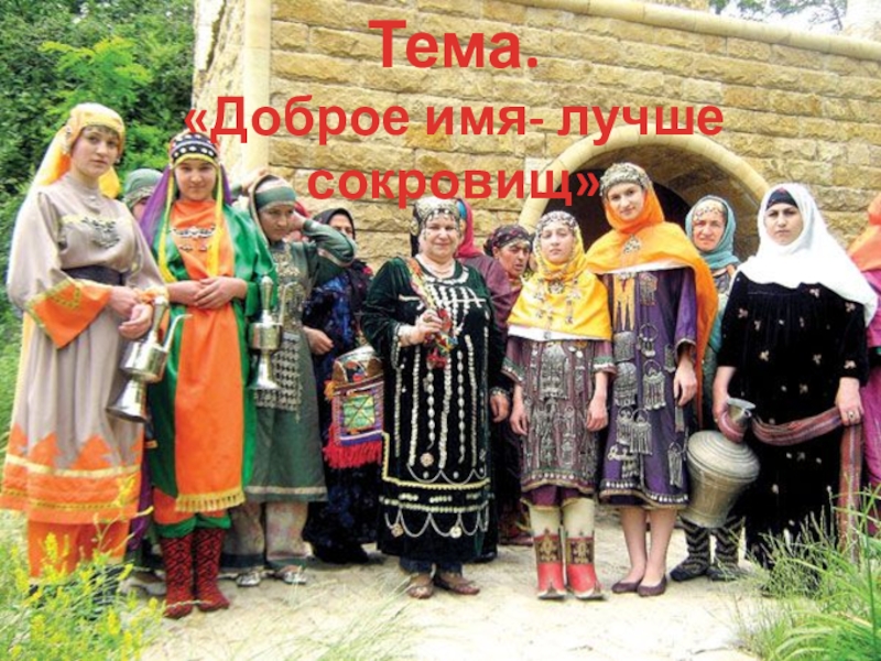 Тема. «Доброе имя- лучше сокровищ»