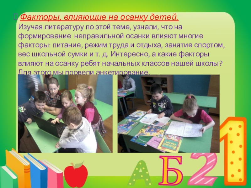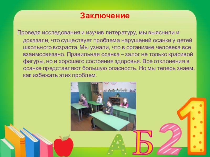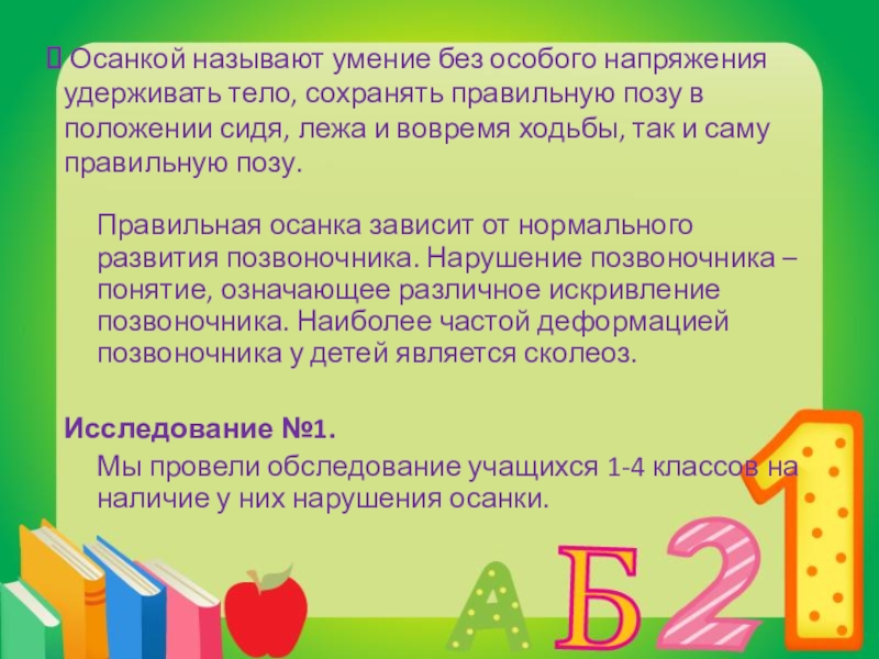 Мы провели обследование учащихся 1-4 классов на наличие у них нарушения осанки.