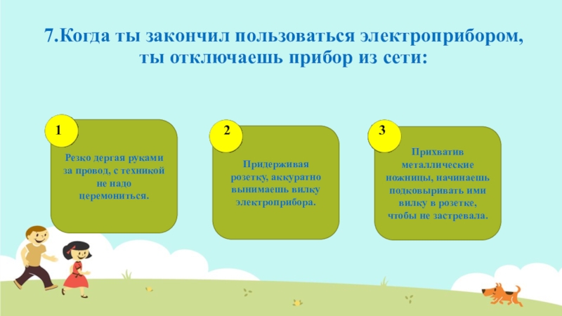 Придерживая розетку, аккуратно вынимаешь вилку электроприбора.