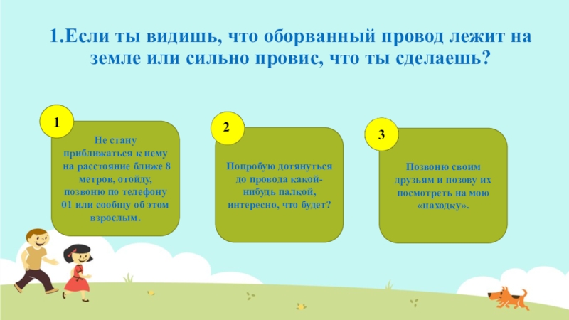 Не стану приближаться к нему на расстояние ближе 8 метров, отойду, позвоню по телефону 01 или сообщу об этом взрослым.