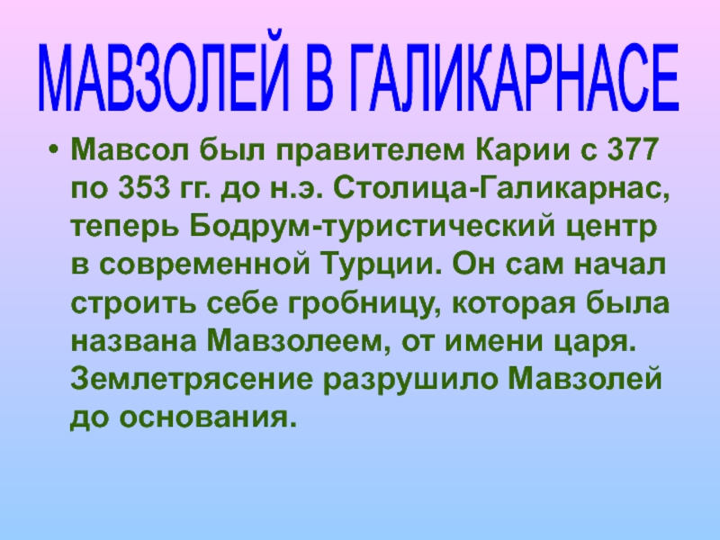 МАВЗОЛЕЙ В ГАЛИКАРНАСЕ