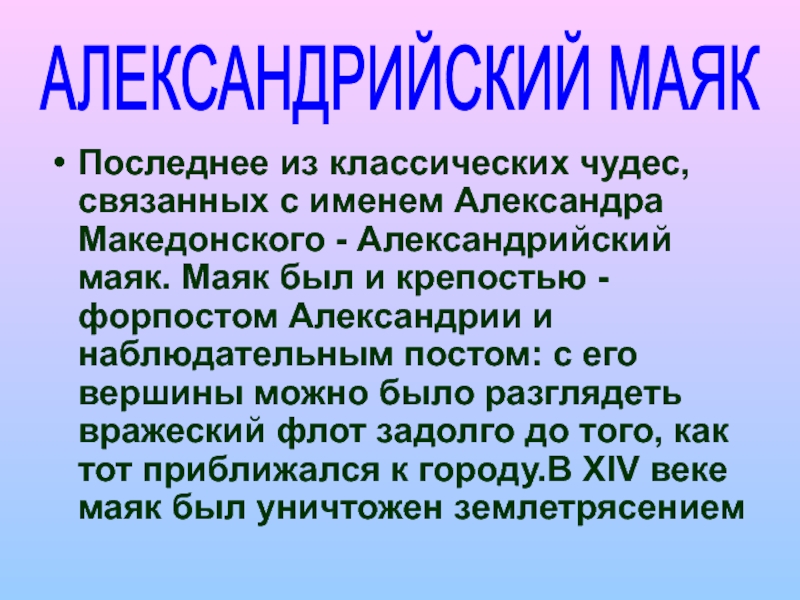 АЛЕКСАНДРИЙСКИЙ МАЯК