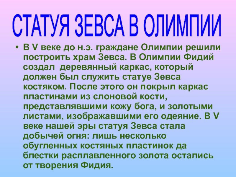 СТАТУЯ ЗЕВСА В ОЛИМПИИ