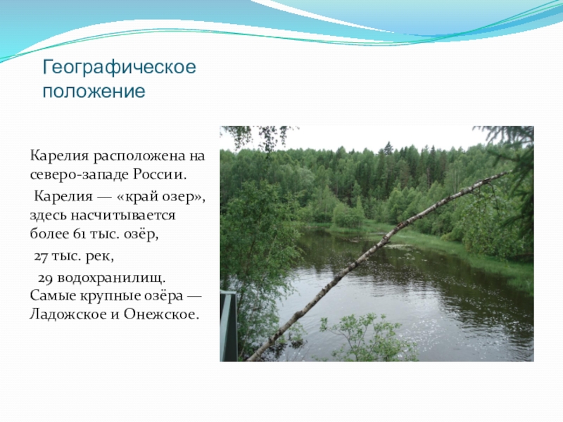 Карелию омывают Баренцево море, Белое море и Ладожское озеро. Через Карелию