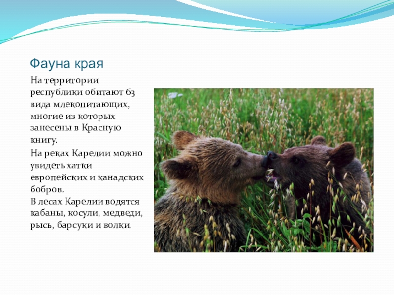 В лесах Карелии водятся кабаны, косули, медведи, рысь, барсуки и волки.