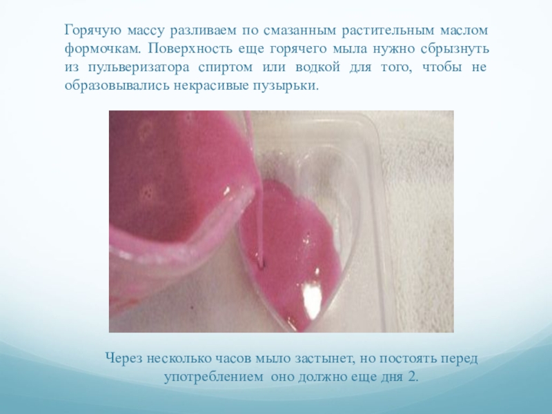 Через несколько часов мыло застынет, но постоять перед употреблением оно должно еще дня 2.