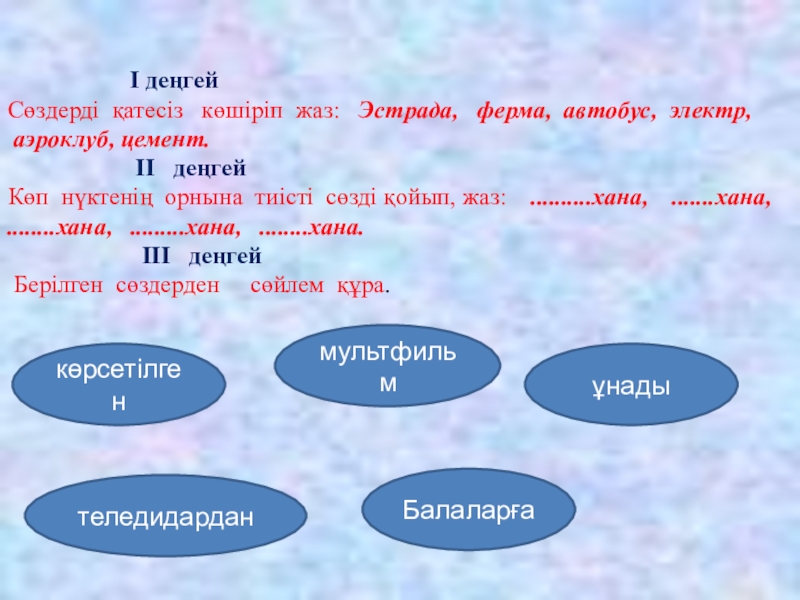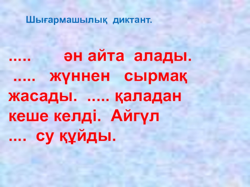 Көп нүктеге тиісті бастауышты қойып жаз.