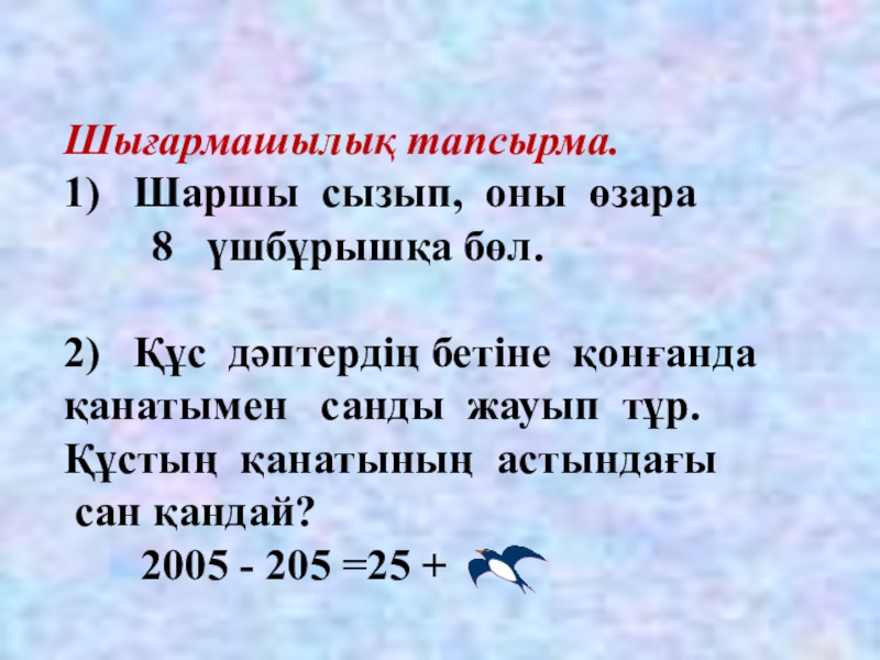 Бастауышты бір бөлек, баяндауышты бір бөлек жазыңдар: