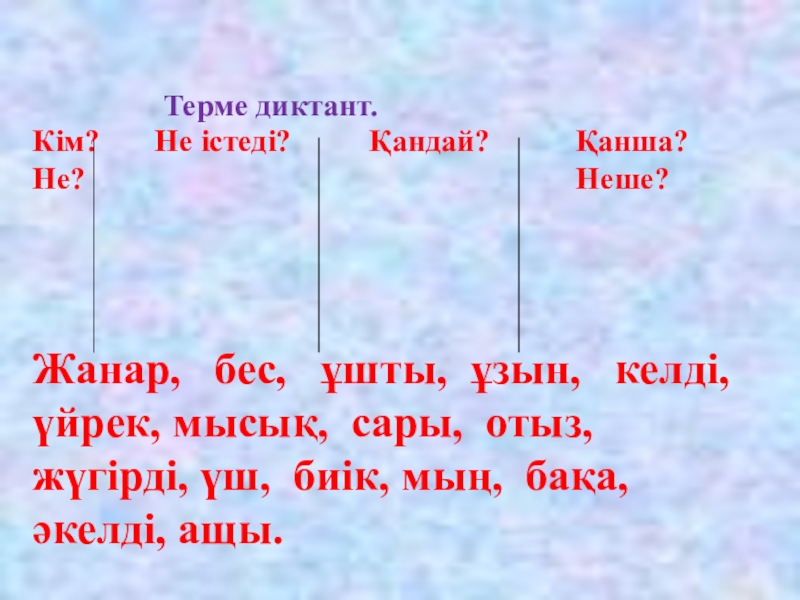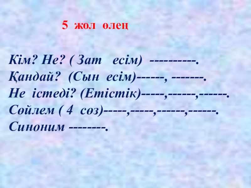 Кім? Не істеді? Қандай? Қанша?