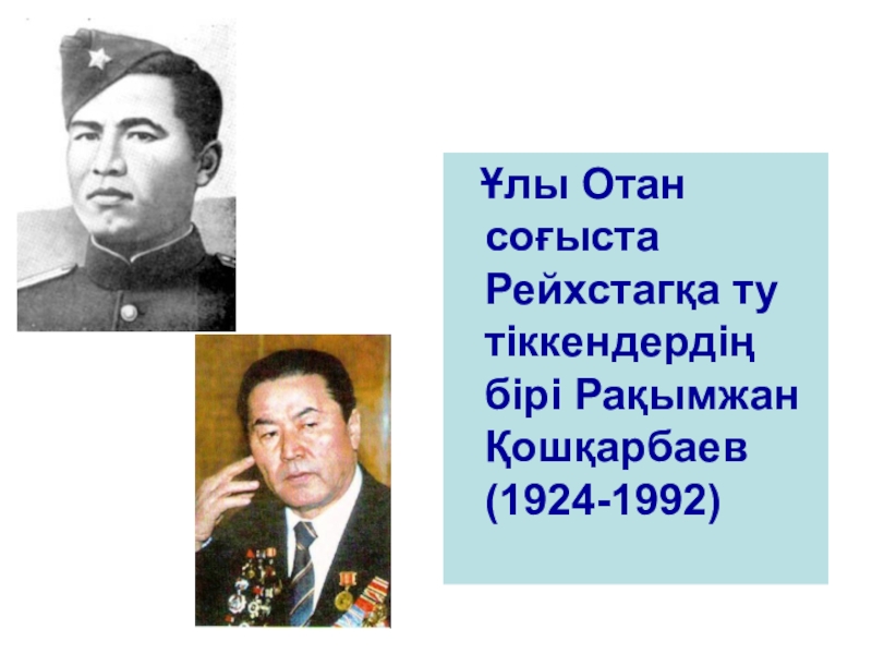 Ұлы Отан соғыста Рейхстагқа ту тіккендердің бірі Рақымжан Қошқарбаев (1924-1992)