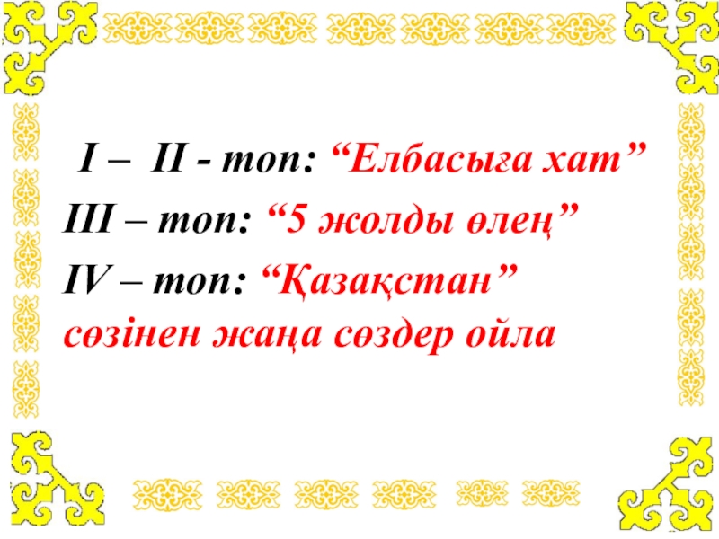 Слайд 7І – ІІ - топ: “Елбасыға хат”