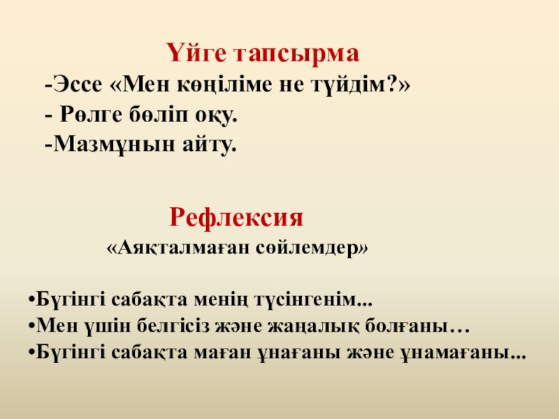 Бүгінгі сабақта маған ұнағаны және ұнамағаны...