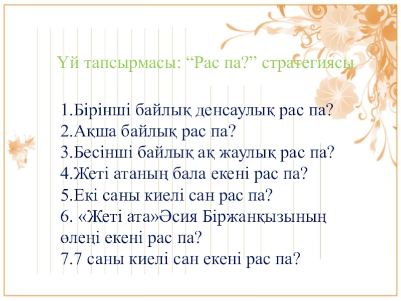 Үй тапсырмасы: “Рас па?” стратегиясы