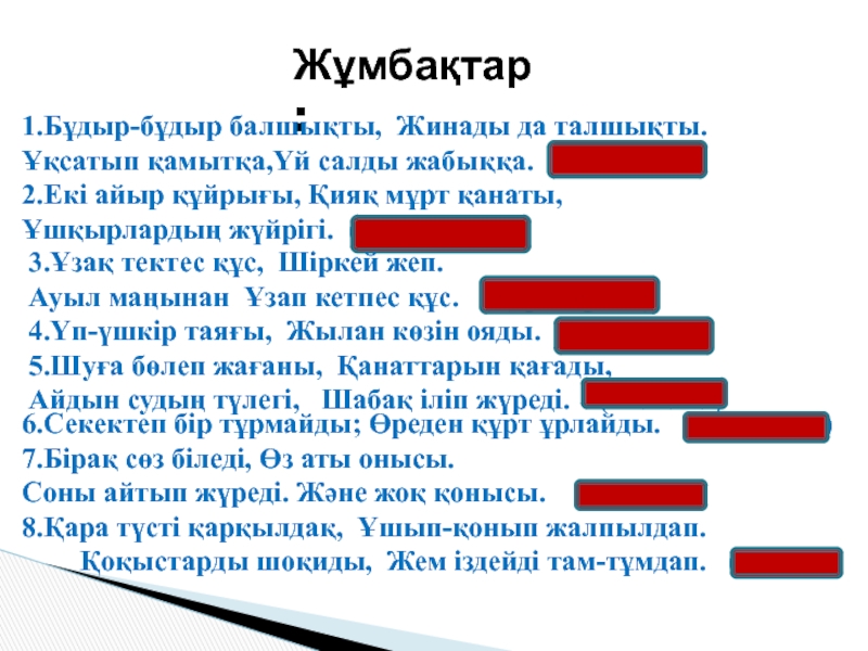 8.Қара түстi қарқылдақ, Ұшып-қонып жалпылдап.