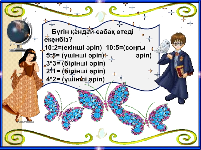 Бүгін қандай сабақ өтеді екенбіз? 10:2=(екінші әріп) 10:5=(соңғы