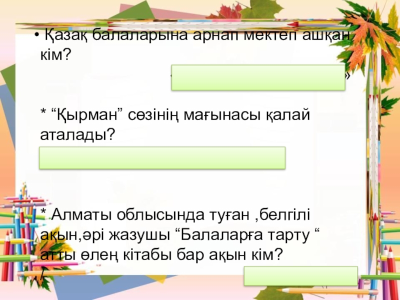 Слайд 5 Қазақ балаларына арнап мектеп ашқан кім?