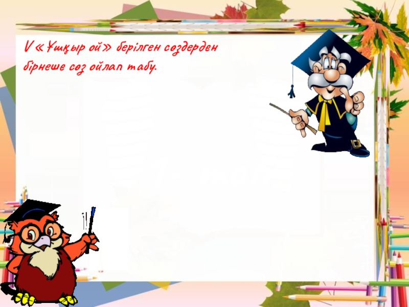 V «Ұшқыр ой» берілген сөздерден бірнеше сөз ойлап табу.