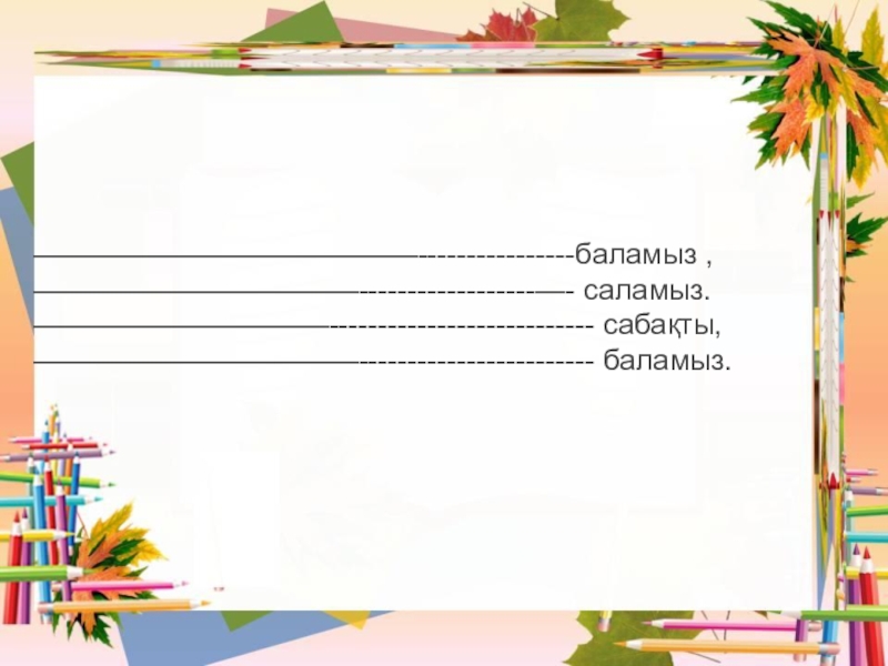 —————————————----------------баламыз ,———————————------------------—- саламыз.——————————--------------------------- сабақты,———————————------------------------ баламыз.