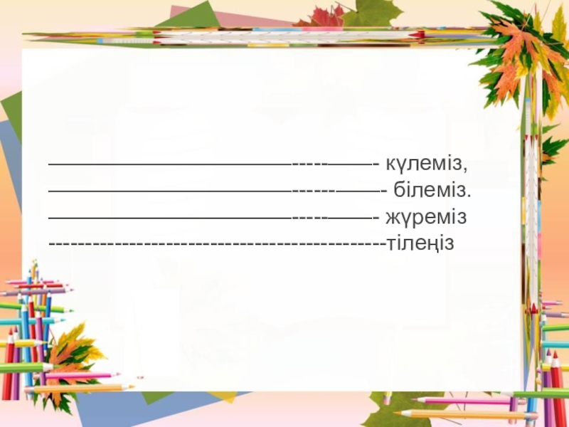———————————-----——- күлеміз,———————————------——- білеміз.———————————-----——- жүреміз----------------------------------------------тілеңіз