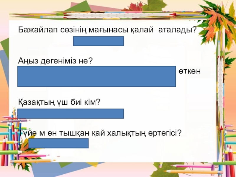 Слайд 9Бажайлап сөзінің мағынасы қалай аталады?