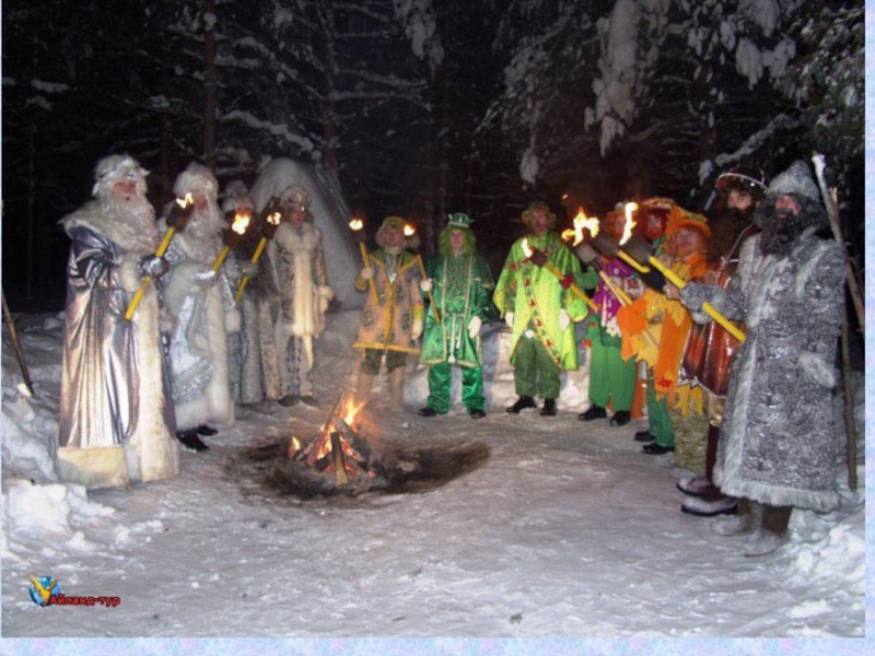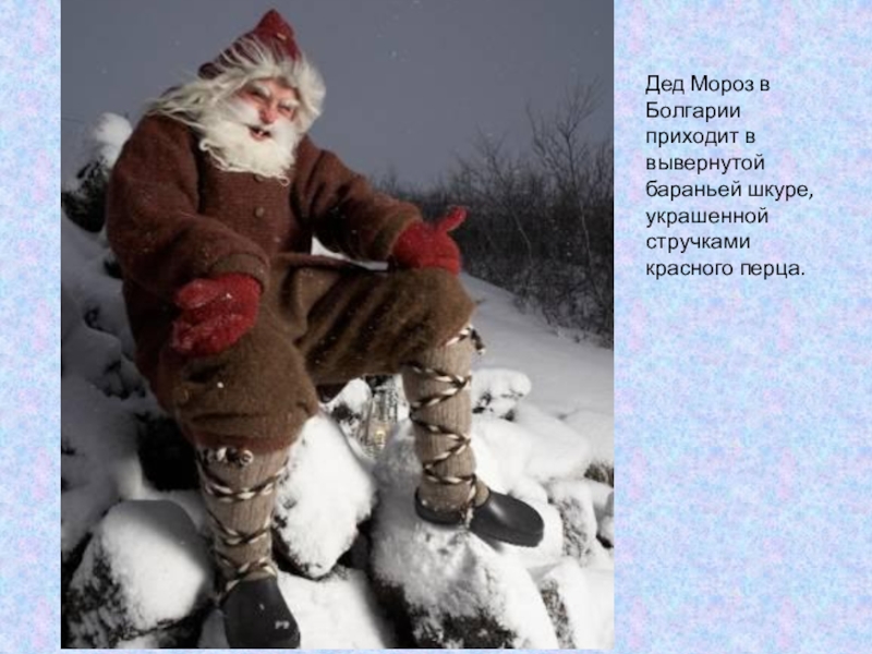 Слайд 97Дед Мороз в Болгарии приходит в вывернутой бараньей шкуре, украшенной стручками