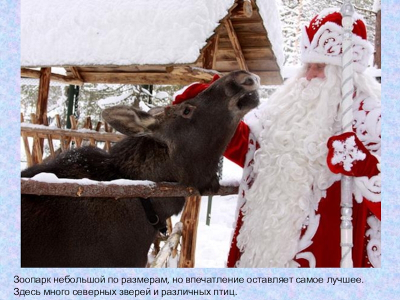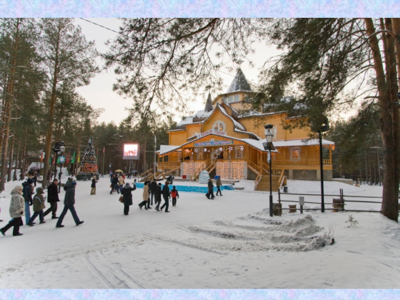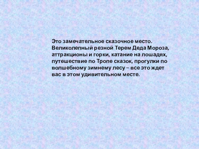 Слайд 8Это замечательное сказочное место. Великолепный резной Терем Деда Мороза, аттракционы и