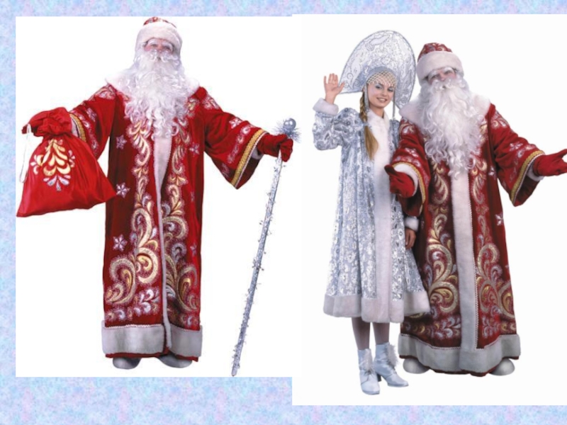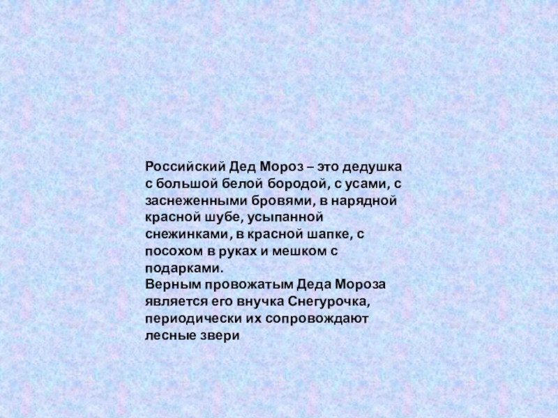Слайд 4Российский Дед Мороз – это дедушка с большой белой бородой, с