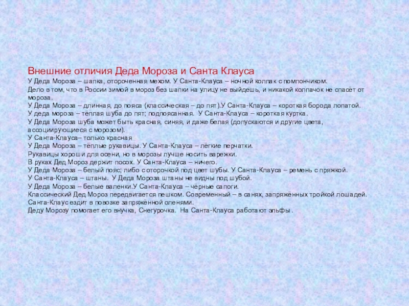 Слайд 87Внешние отличия Деда Мороза и Санта Клауса