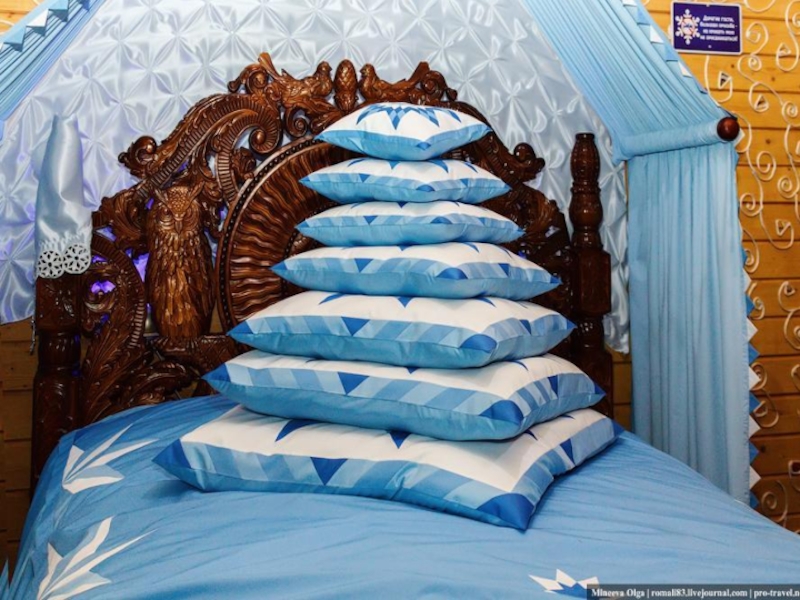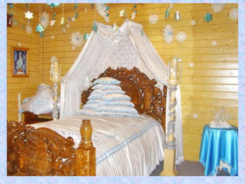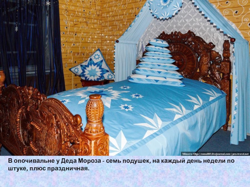 Слайд 18В опочивальне у Деда Мороза - семь подушек, на каждый день