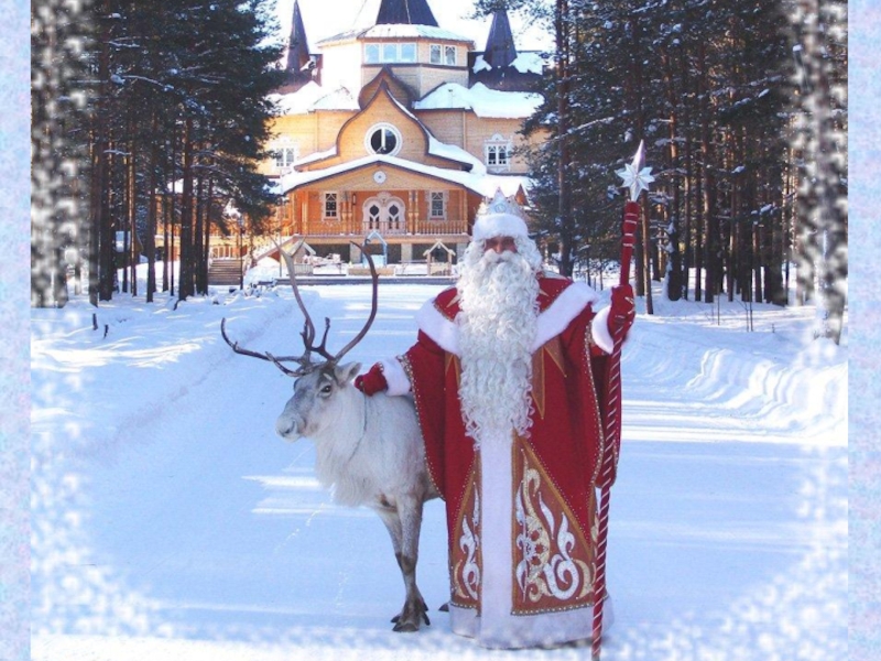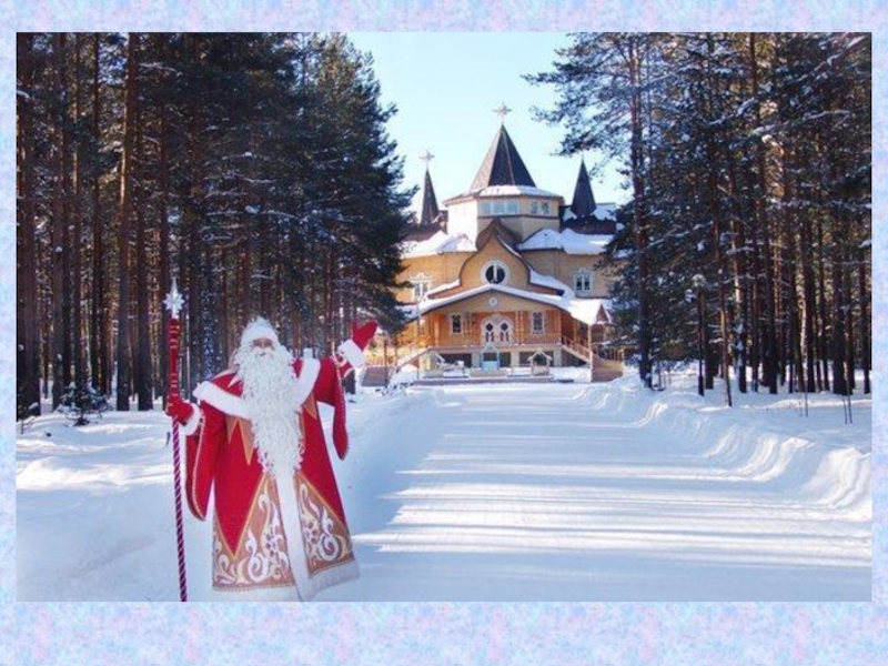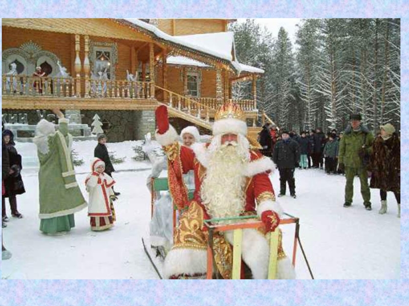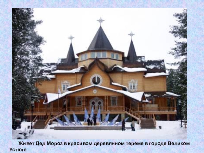 Слайд 7 Живет Дед Мороз в красивом деревянном тереме
