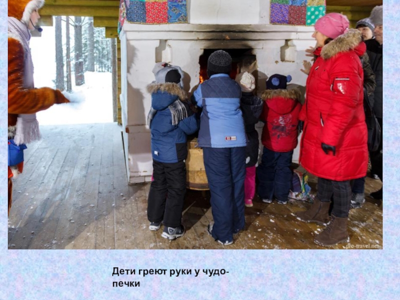 горок на надувных санях, на мотосанях, в санях с лошадьми, на паровозике и совсем экзотическим способом – катание на русской печи Емели – продолжение веселого отдыха в вотчине Деда Мороза.