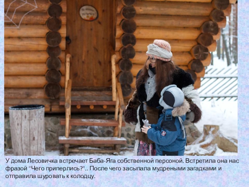 Слайд 55У дома Лесовичка встречает Баба-Яга собственной персоной. Встретила она нас фразой