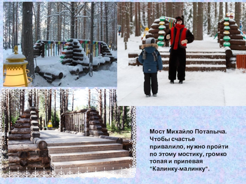Слайд 56Мост Михайло Потапыча. Чтобы счастье привалило, нужно пройти по этому мостику,
