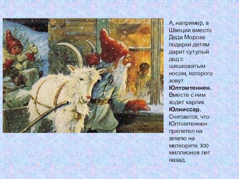 Слайд 92А, например, в Швеции вместо Деда Мороза подарки детям дарит сутулый