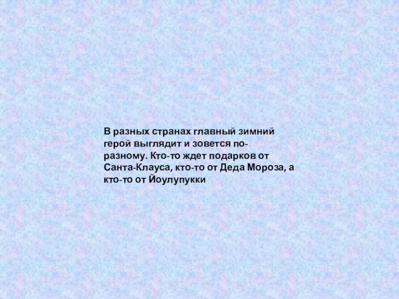 Слайд 84В разных странах главный зимний герой выглядит и зовется по-разному. Кто-то ждет подарков