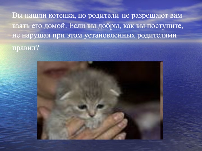 Слайд 13Вы нашли котенка, но родители не разрешают вам взять его домой.