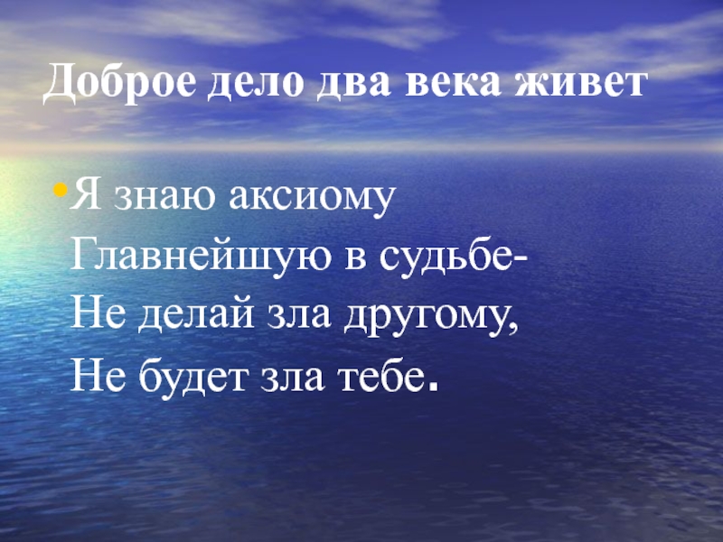 Слайд 14Доброе дело два века живет