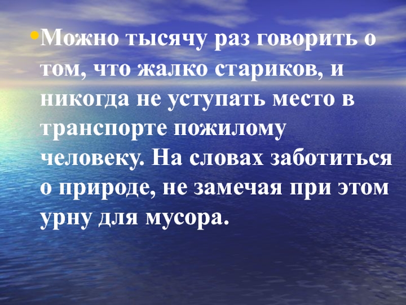 Слайд 16Можно тысячу раз говорить о том, что жалко стариков, и никогда